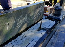 Начинается процесс монтажа. Доставляем памятники, крепим их, приклеиваем и насаживаем на штыри все конструктивные элементы надгробий.